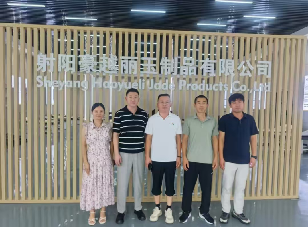 在江苏射阳豪越丽玉制品有限公司,研究所团队在企业负责人的陪同下,实地参观了玉石原料加工车间成品展厅,详细了解企业从玉石原料采购、设计加工到市场销售的全产业链运营模式。交流中,企业负责人重点介绍了依托县域玉石资源带动周边乡村就业的实践。