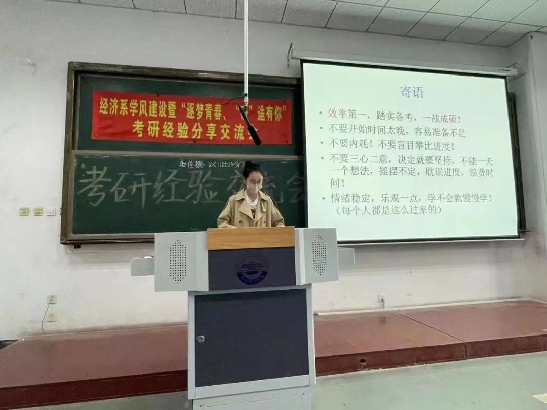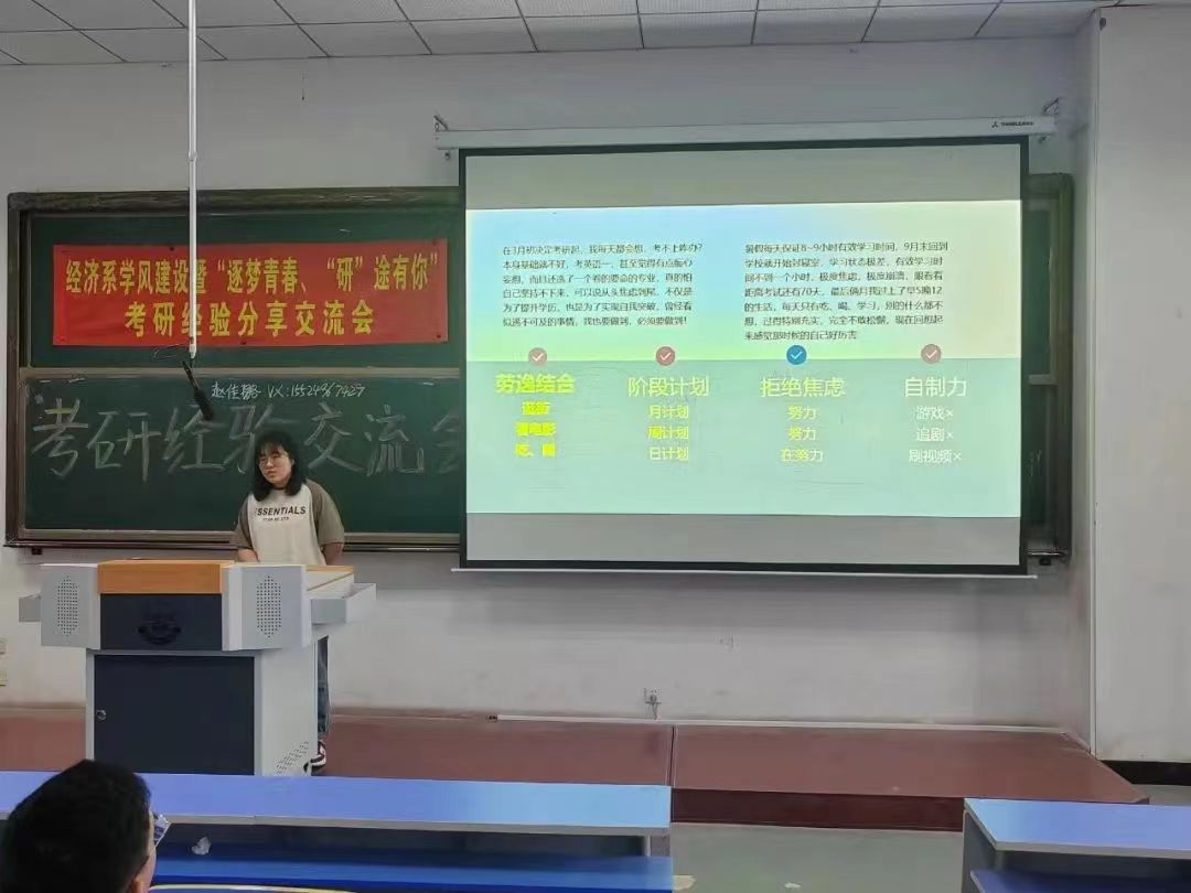 为帮助有考研意向的员工进一步明确考研目标,坚定考研信心,指引好考研方向,5月17日13时,在第二教学楼201开展了“逐梦青春、“研”途有你”考研经验分享交流会,此次活动特邀经济系2019级已录取的员工做考研经验交流,分享自己的考研故事,传授自身的考研经验。