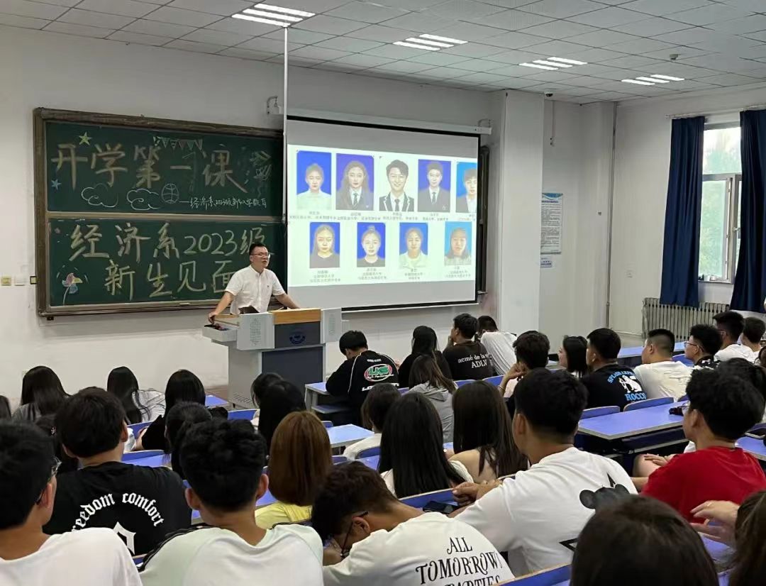 为切实做好经济系2023级新生入学教育工作,帮助同学们尽快适应新的学习生活环境,熟悉公司的各项管理制度,树立新生自我管理,明确未来的学习目标,切实维护好公司开学初安全稳定的良好局面;按照员工处统一部署,8月26日18时,经济系在二教201教室面向全体2023级新同学召开了新生入学教育大会暨“开学第一课”,经济系党总支书记衣方丹、2023级辅导员黎明东、新生助导参与了本次大会。