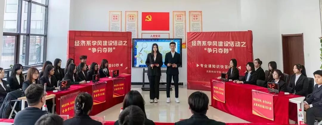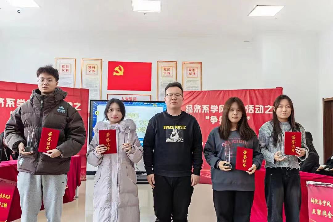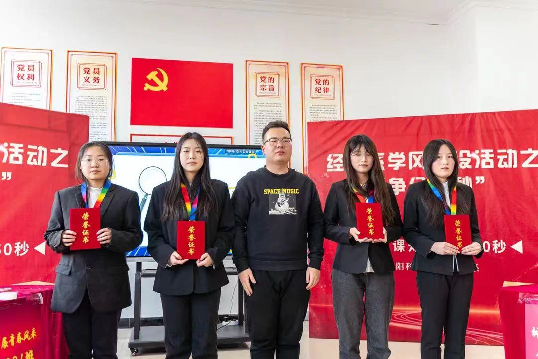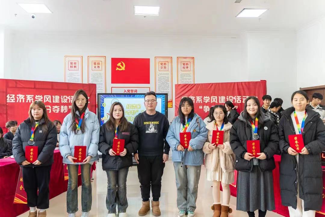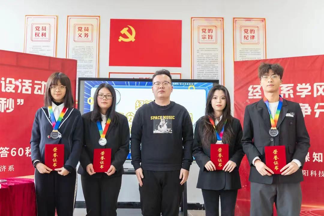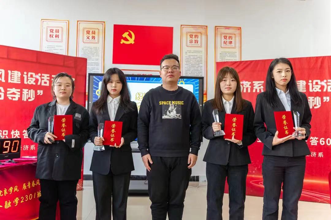 为进一步加强学风建设,营造良好的学习氛围,丰富员工的专业知识储备,促进专业知识的灵活运用,提高员工之间的交流与合作,加强班级的凝聚力、向心力。经济系于2023年12月12日13时在星海员工社区开展了“争分夺秒”专业课知识快答60秒专业课知识竞赛活动,经济系党总支书记衣方丹、经济系团委书记黎明东、专业课教师胡雅楠、冯家源参加了此次活动。