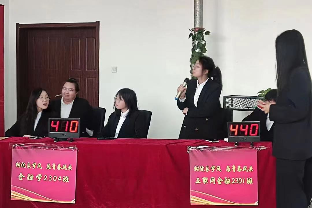 最终,金融2303班刘海博、金瑶、张芯瑜、张森尧荣获知识竞赛第一名;金融2301班段林烨、邓岳升、戈安娣、郭思彤荣获知识竞赛第二名;金融2302班吕军燃、李云迪、金芷伊、郭迎新荣获知识竞赛第三名。互金2301班李浩冰、来蕊,金融2303班周家秀、姜远昊荣获“点钞大比拼”环节第一名。
