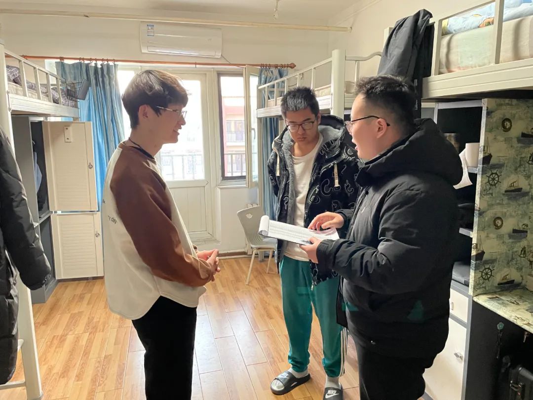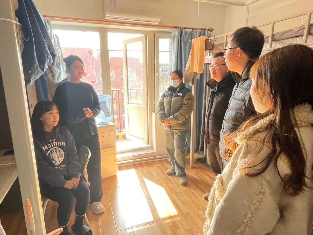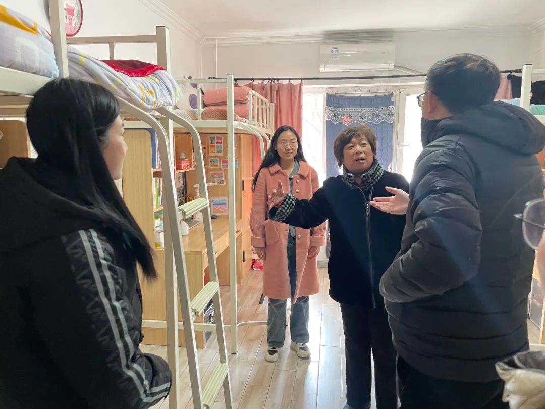 随后,经济系各年级辅导员陪同校领导走访员工寝室,走访过程中,与同学们亲切交流,详细询问了大家的思想、学习、生活情况,亲切的叮嘱员工要遵守校园管理规定,把最好的状态投入到新学期的学习生活中,践行好“博学笃行、种德修身”的校训精神,在新学期里勇敢追逐青春梦想。