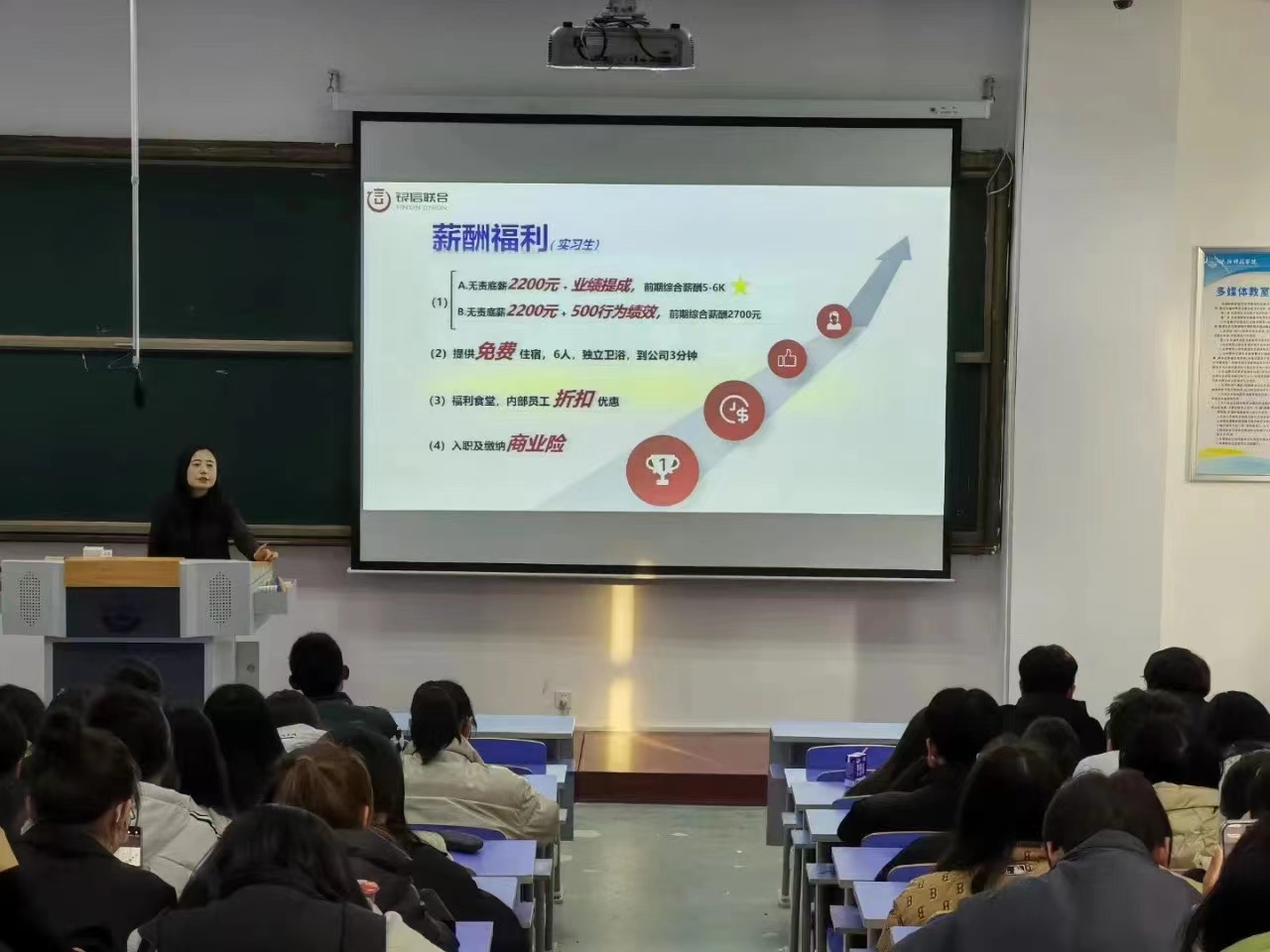 宣讲会上,招聘单位通过发放宣传折页、播放企业宣传视频、PPT讲解、面对面交流等方式介绍了单位概况、招聘需求、薪资待遇、个人晋升等,为员工提供岗位30余个。管迪主任表示,希望同学们对自己多认知,了解就业政策,树立正确的就业观、择业观,尽早实现选择好实习和就业岗位。