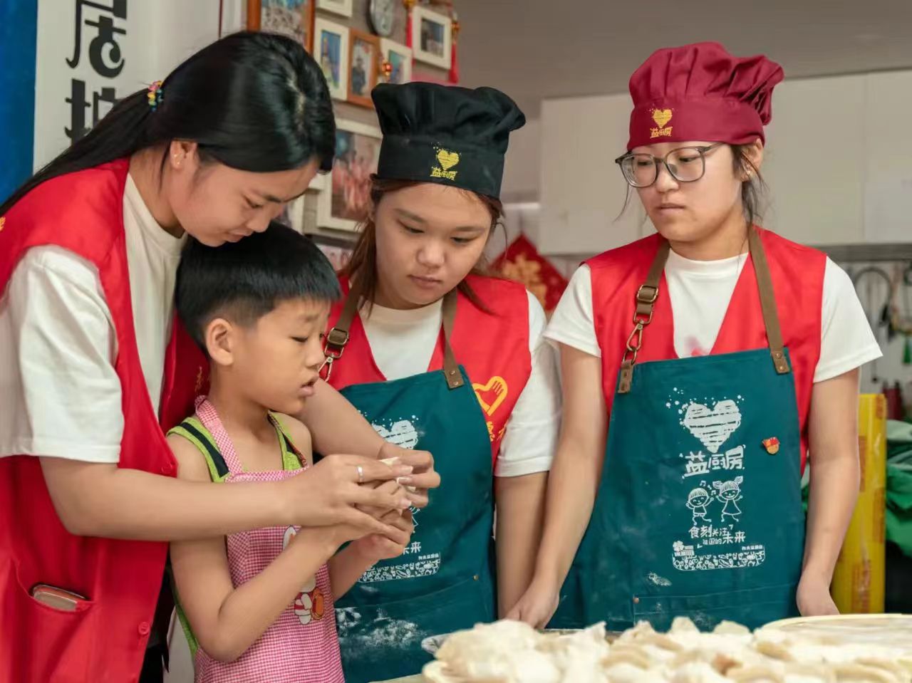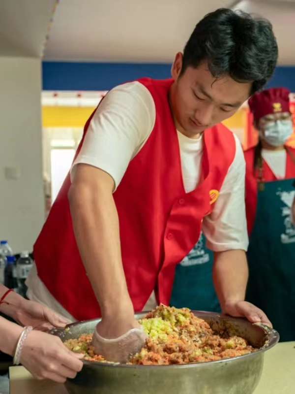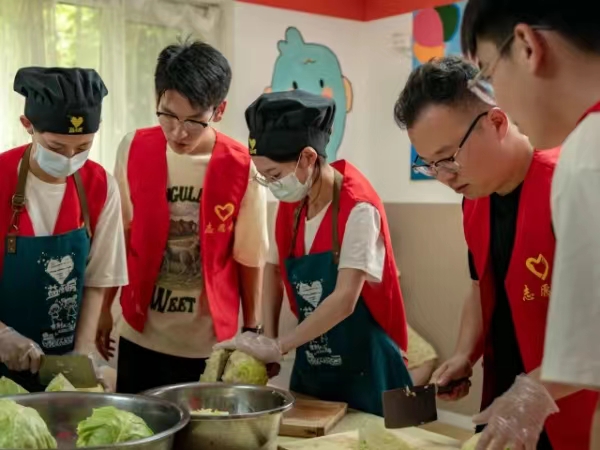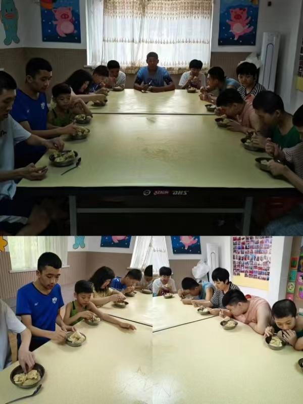 活动中,志愿者分工明确,有的洗菜、有的揉面、有的擀皮、有的包馅,大家都用自己拿手的方式参与到包饺子的活动中来,不大一会儿工夫,桌子上摆满了包好的饺子。活动期间,志愿者为特殊儿童们讲述着头伏吃饺子的寓意,还为小朋友“手把手”进行实践教学,现场氛围其乐融融。
