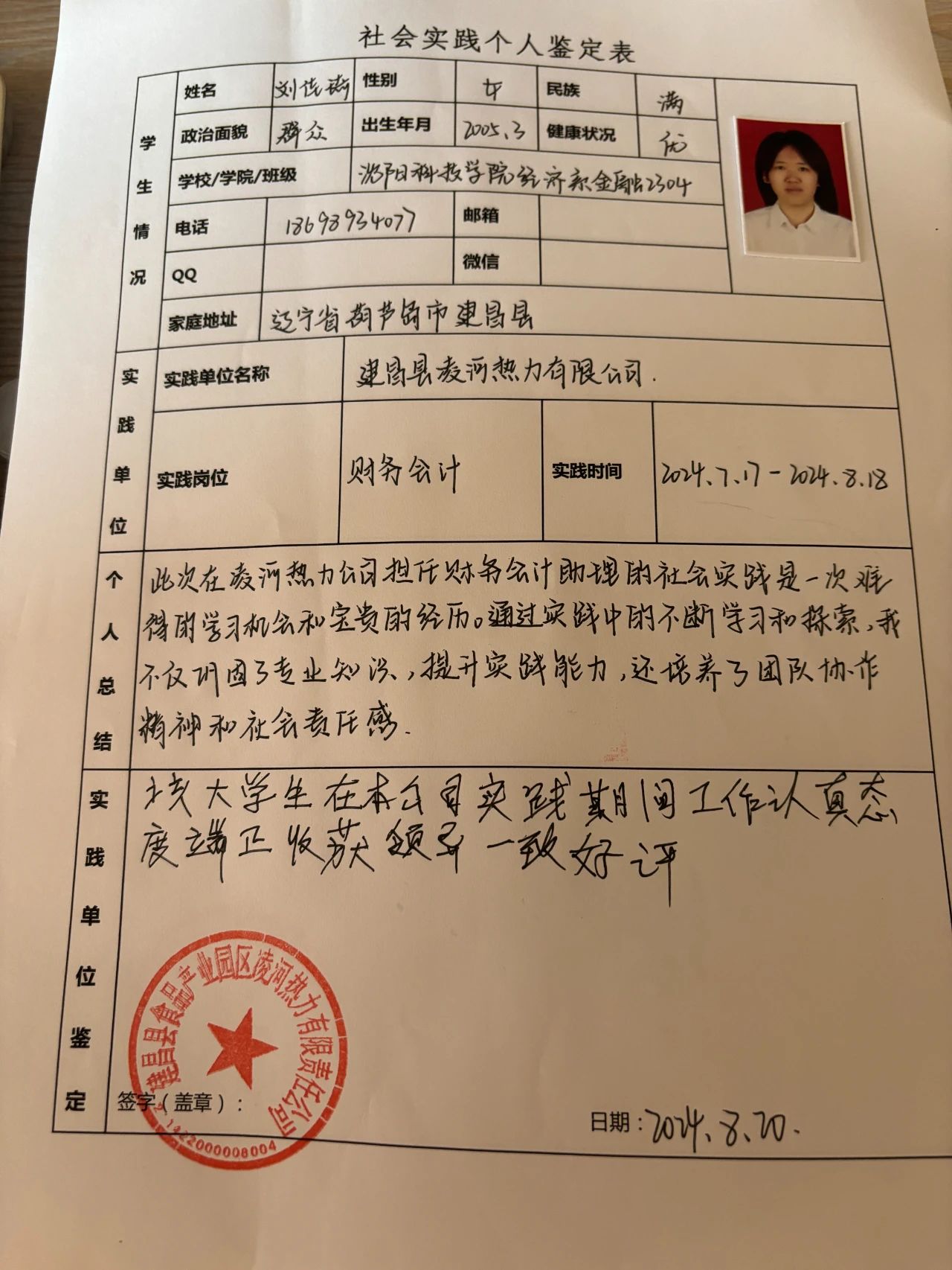 此次在葫芦岛市凌河热力公司担任财务会计助理的社会实践是一次难得的学习机会和宝贵的经历。通过实践中的不断学习和探索,我不仅巩固了专业知识、提升了实践能力,还培养了团队协作精神和社会责任感。未来,我将继续努力学习新知识、掌握新技能并积极参与社会实践活动,为成为一名优秀的财务会计专业人才而不懈奋斗!同时,我也将关注热力行业的发展动态和财务管理的新趋势,不断提升自己的专业素养和综合能力,为企业的发展贡献自己的力量。