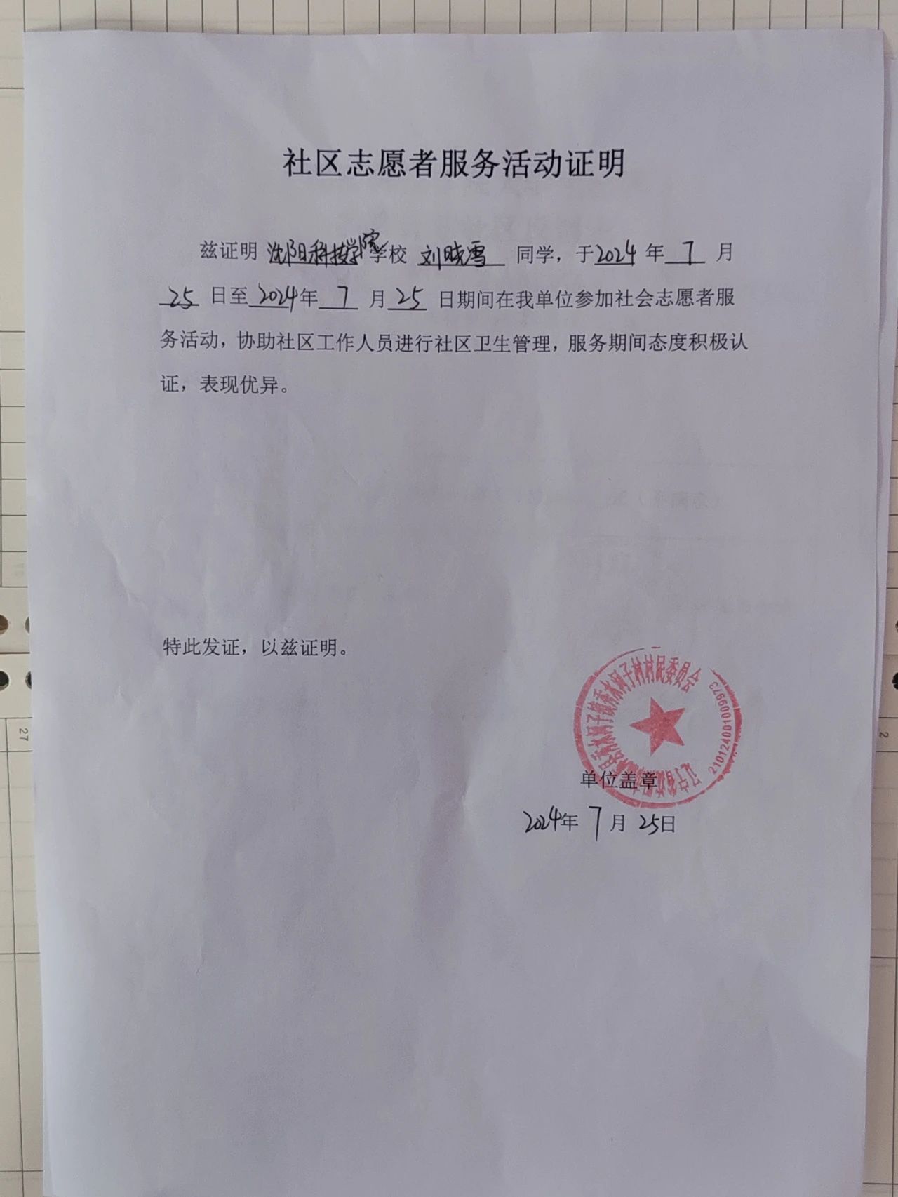 这次经历让我更加明白了作为青年学子的责任与使命,也让我更加珍惜与家乡、与社区之间的深厚情感。我相信,在未来的日子里,无论我走到哪里,这份对家乡的热爱与责任都将伴随着我,激励我不断前行。同时,我也期待有更多的青年学子能够加入到我们的行列中来,用青春和汗水共同书写属于我们的精彩篇章、共同为创造更加美好的家园而努力奋斗。