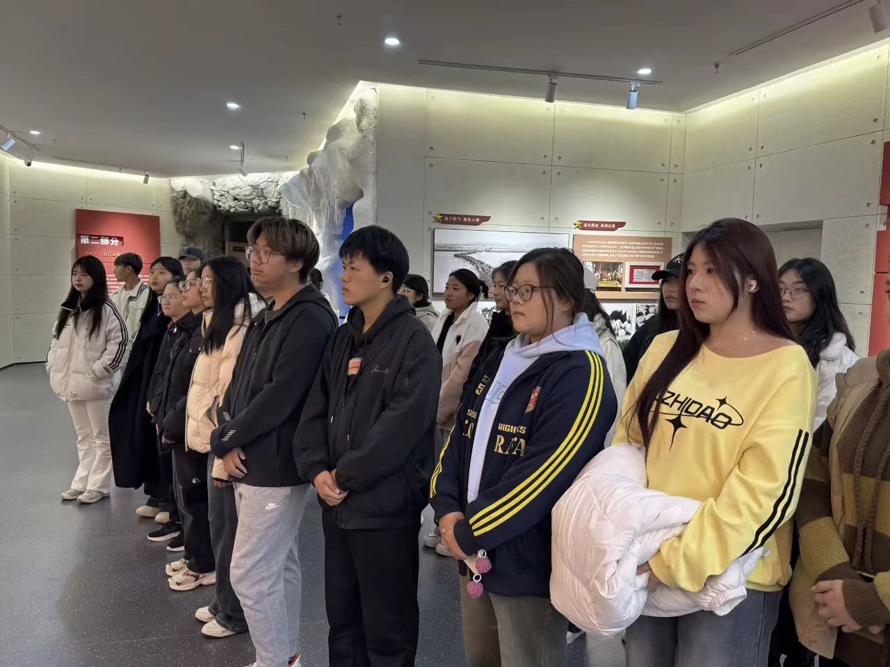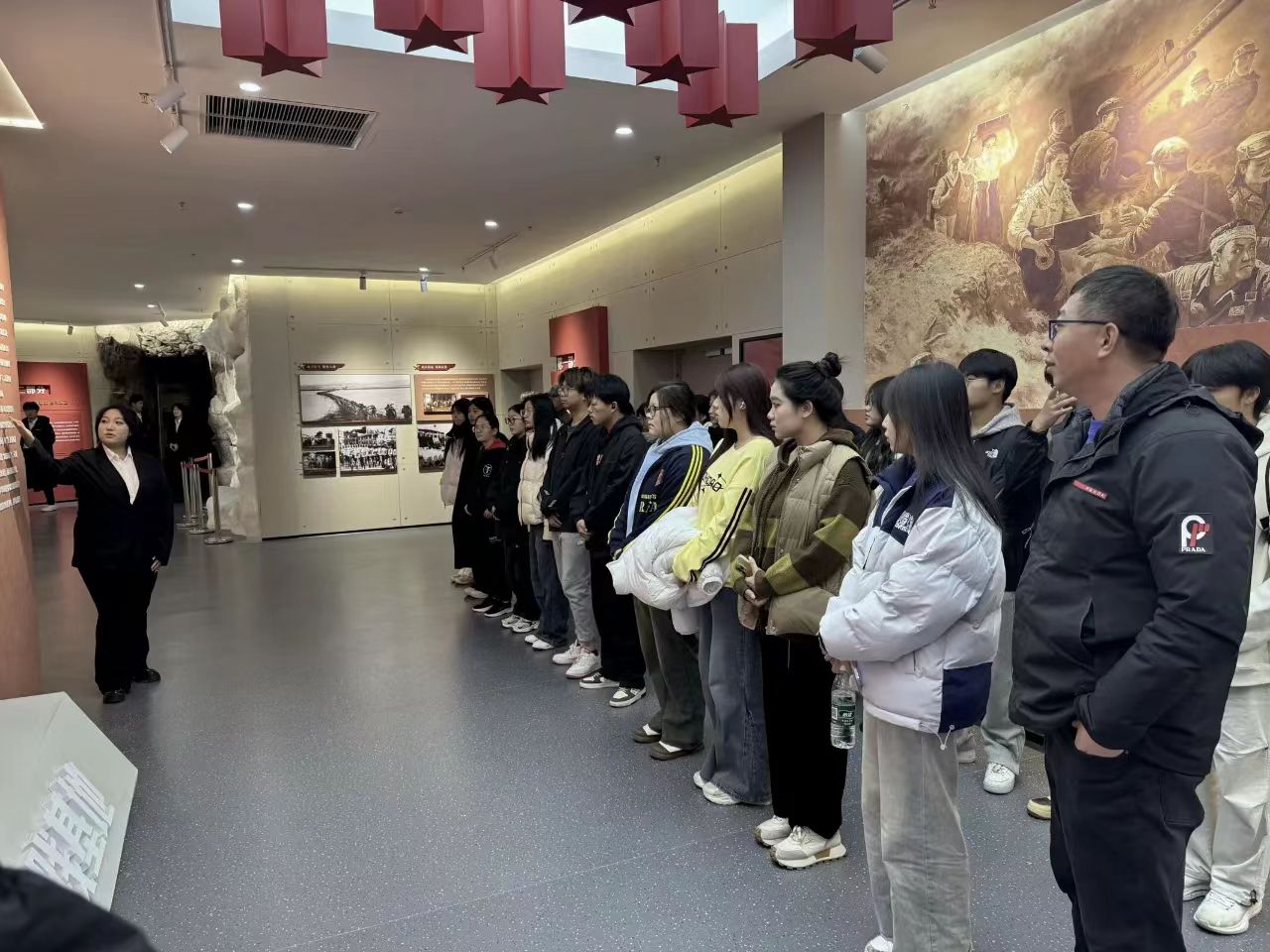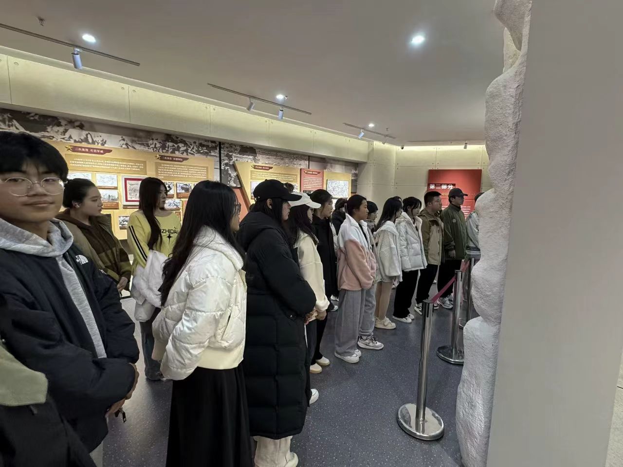 10月15日,经济系党总支书记、2024级辅导员衣方丹组织员工来到公司抗美援朝精神育人实践基地参观学习,经济系学子跟随讲解员循着历史的足迹依次参观,感受抗美援朝战争的光辉历史,追忆革命先辈艰苦卓绝的奋斗历程,感悟志愿军舍生忘死、英勇无畏的革命精神,师生怀着对先烈的无比敬仰,瞻仰革命先辈的英雄事迹,一张张老照片、一件件陈列展品带领大家回顾了抗美援朝战争中志愿军烈士保家卫国的英雄壮举,追忆革命先辈艰苦卓绝的奋斗历程,深切感受中国人民志愿军的英雄事迹。此次参观学习使师生们接受了一次生动形象的爱国主义教育,深刻体会到战争年代革命先烈的坚强与勇敢,使大家更加懂得要珍惜和平年代的生活,大家纷纷表示将牢记历史,继承和学习革命先烈们崇高的思想和坚定的理想信念,以更加饱满的热情投入到今后的工作和学习当中,肩负使命,笃定前行。