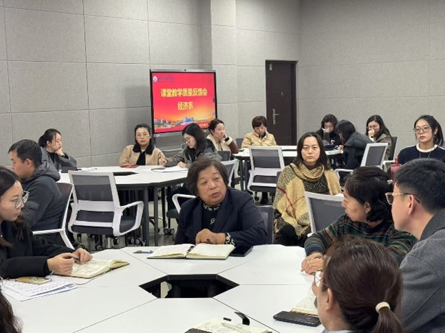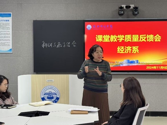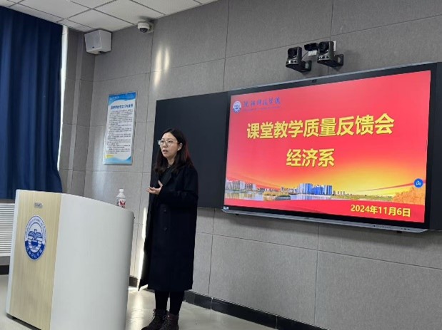 为加强课堂教学质量监控,切实提高教师教学水平,11月6日下午,经济系在第二教学楼智慧教室召开了课堂教学质量反馈会,副董事长张丽影,经济系主任管迪,教学主任李贺,校级教学督导岳玉珠及我系全体教师参加了本次会议,会议由李贺主持.