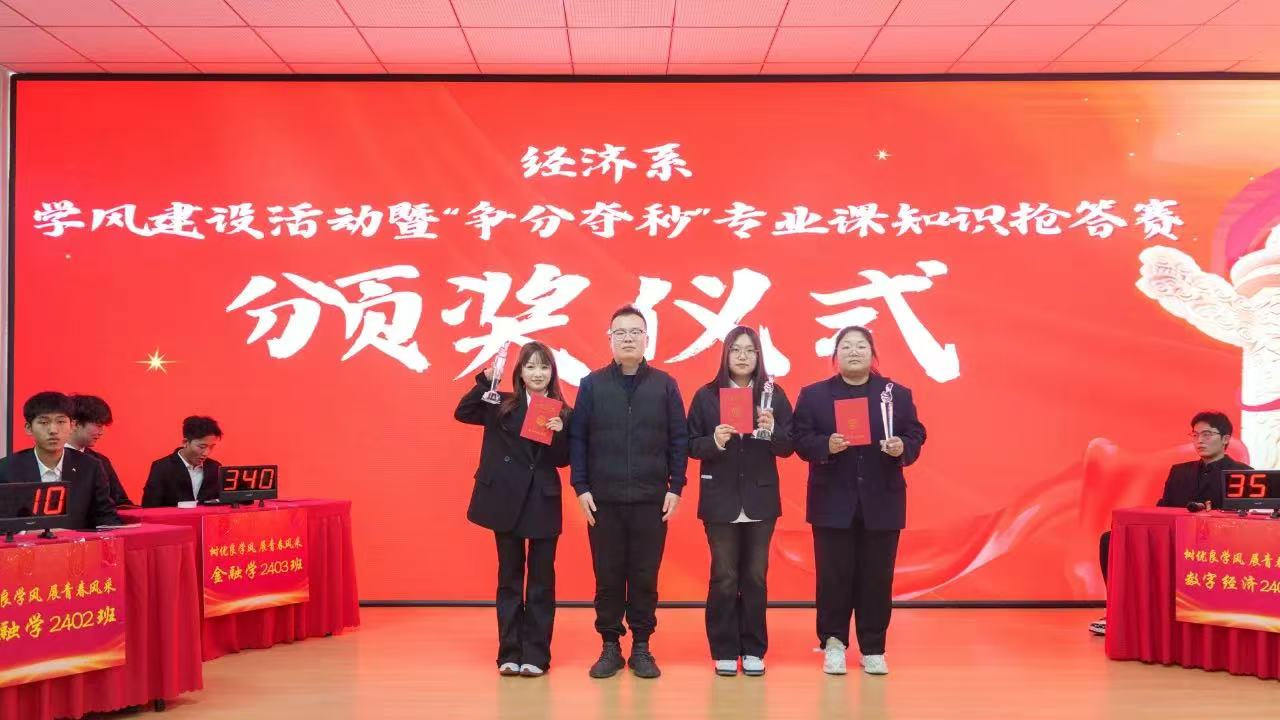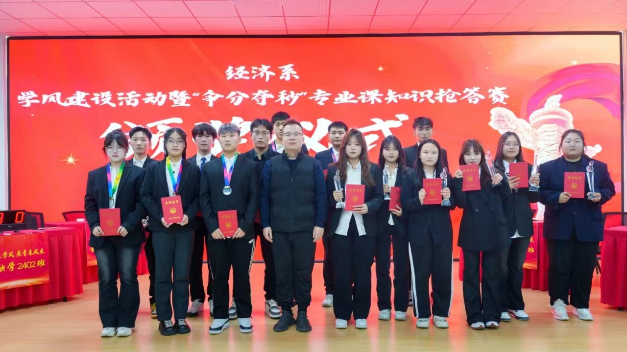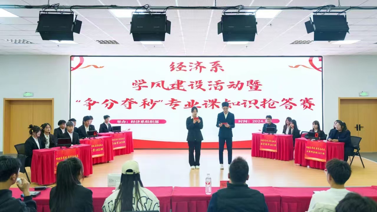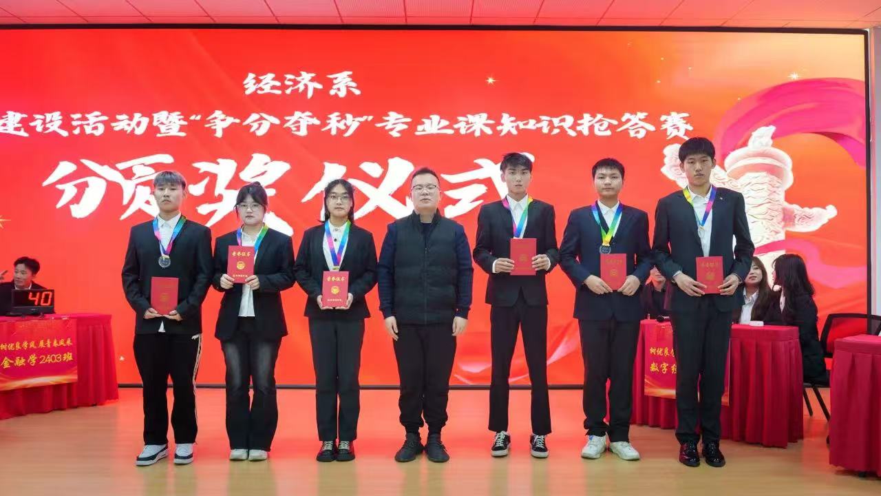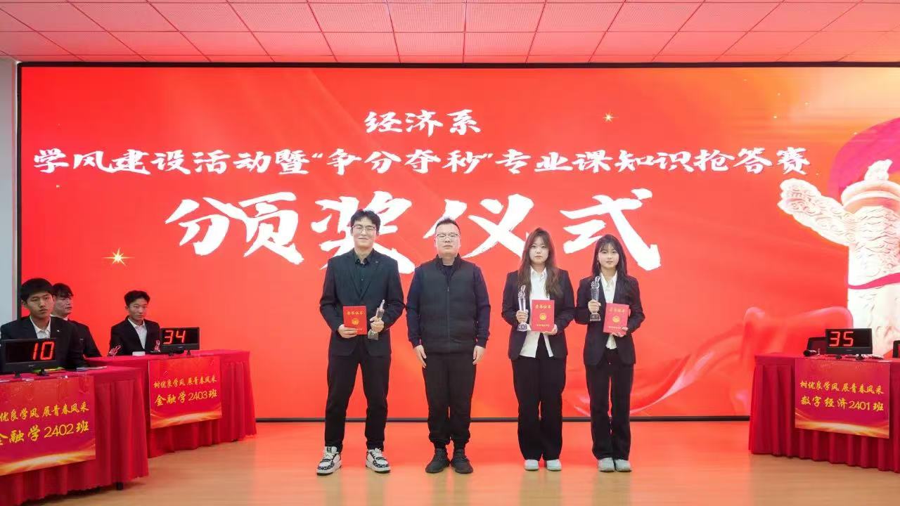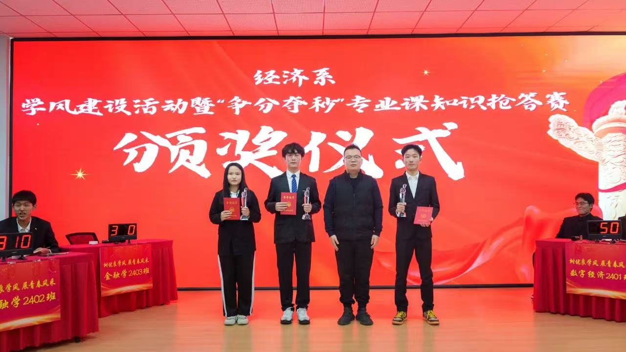 参赛分为5组,每个班级选派三名代表参赛,比赛内容包括:初露锋芒(必答题)、争先恐后(抢答题)、绝处逢生(翻盘题)、势均力敌(加时赛),此次活动得到了广老员工的积极反响,参与热情度极高,现场选手积极回答问题,充分展现出了经济系学子们对专业课知识的理解与运用,营造了良好的学习氛围。最终,数字经济2401班荣获冠军;互联网金融2401班荣获亚军;金融学2303班荣获季军;金融学2401班、金融学2402班获优秀奖。