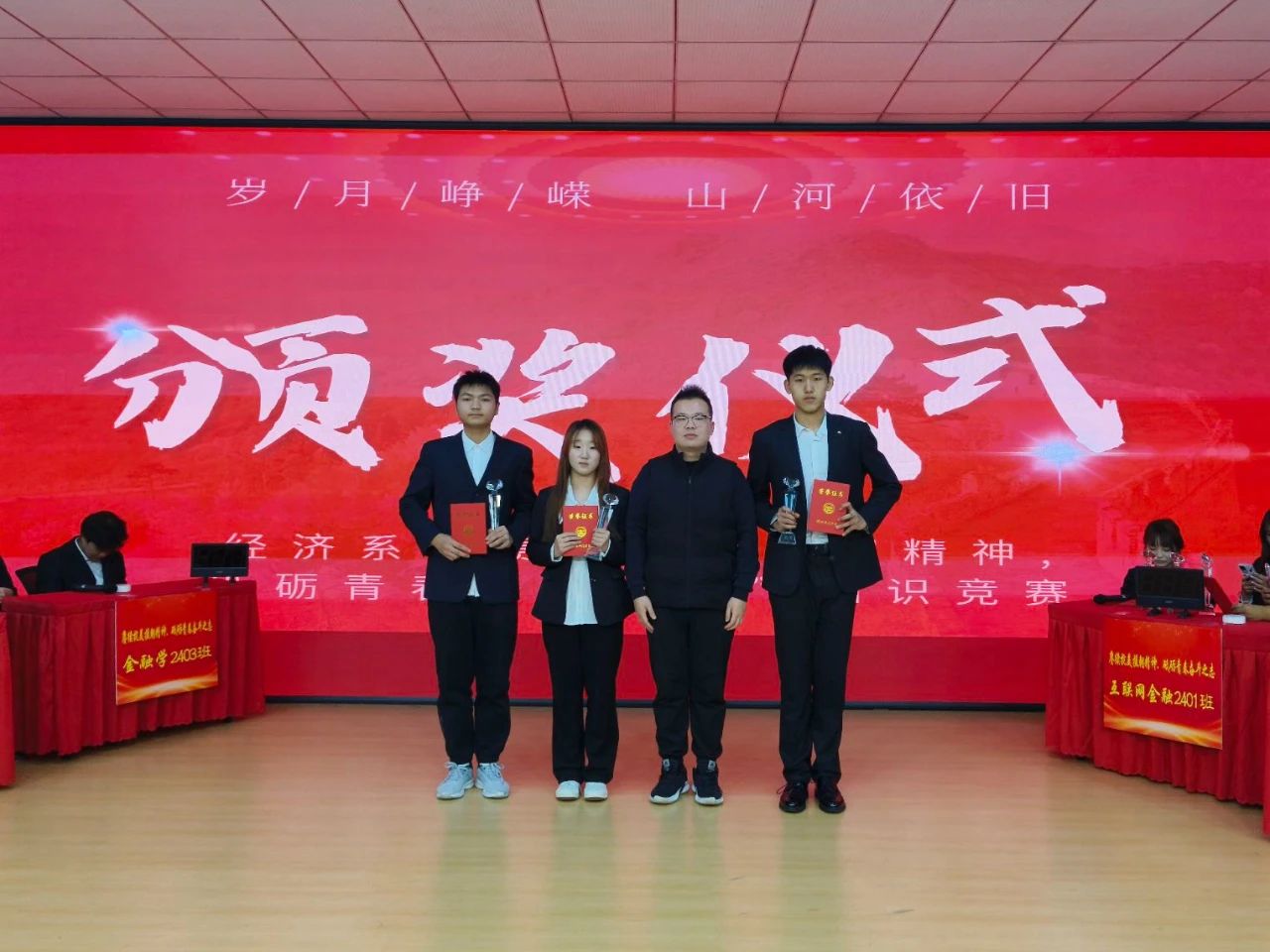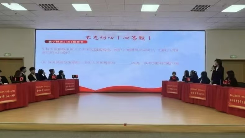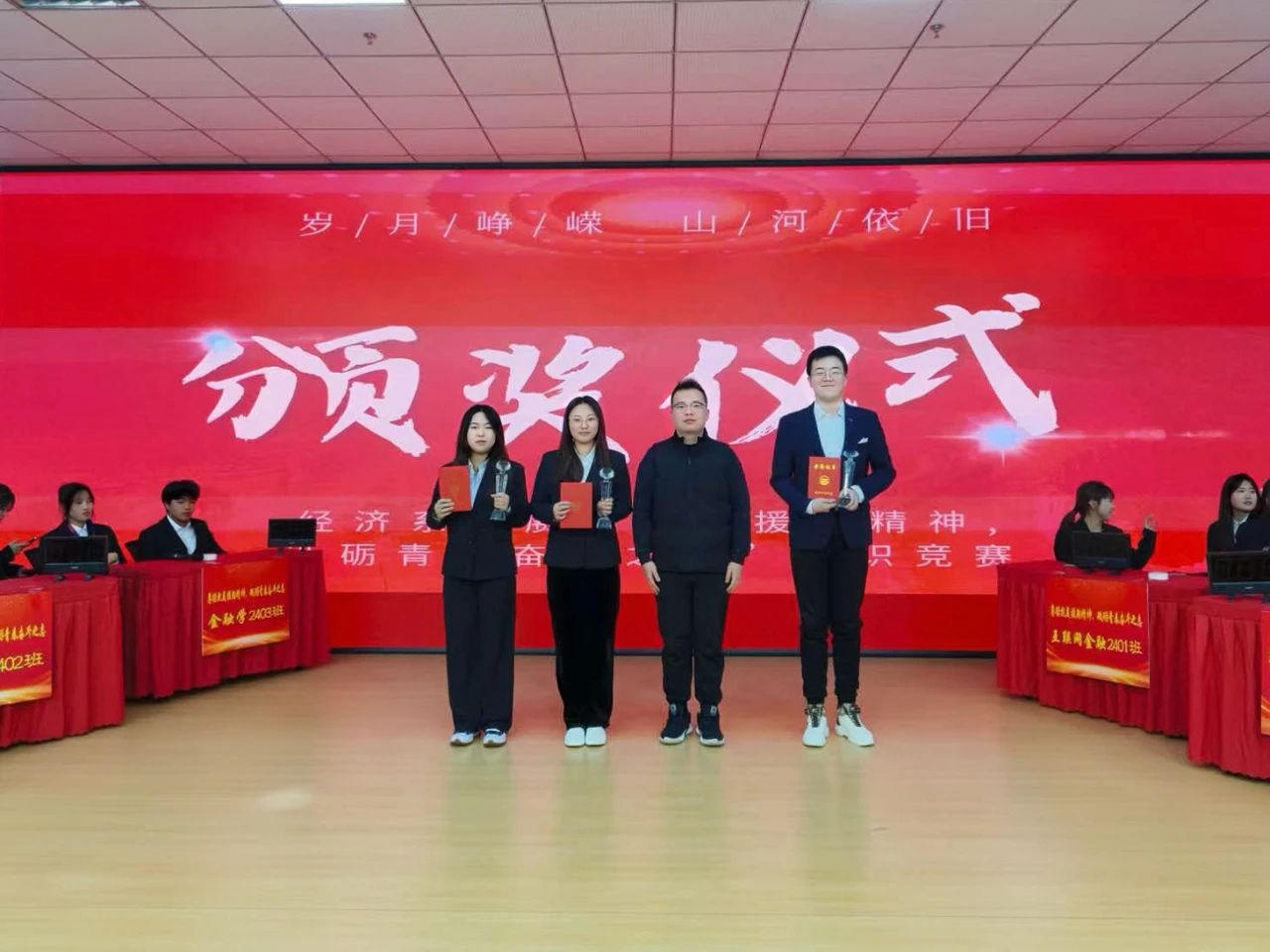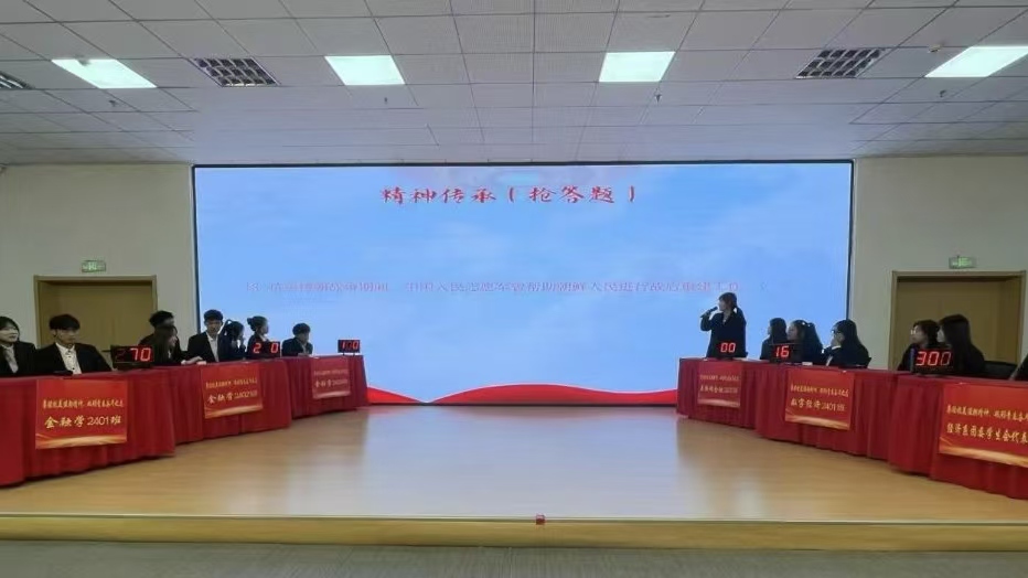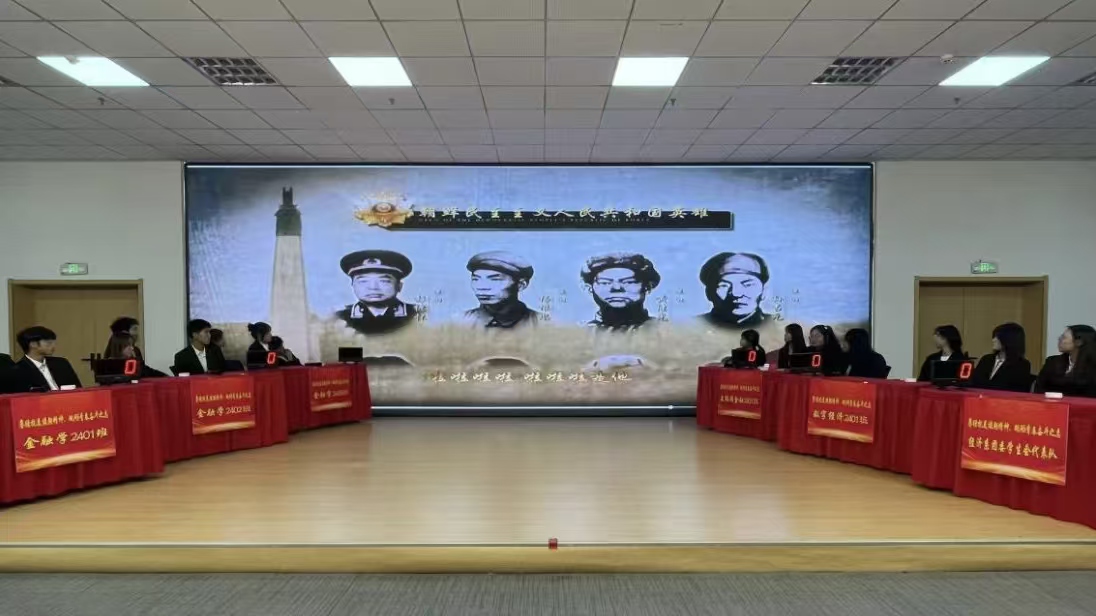 比赛开始前,师生共同观看了《抗美援朝保家卫国》纪录片,再一次重温了那段难忘的峥嵘岁月;参赛分为6组,每支队伍三名选手参赛,比赛环节分为不忘初心(必答题)、精神传承(抢答题)、永不言败(翻盘题),竞赛内容涵盖了抗美援朝战争的历史背景、重要战役、英雄人物等知识,活动现场选手们沉稳冷静从容应对,凭借扎实的知识储备,快速准确地作答,现场氛围紧张激烈,赢得台下观众阵阵掌声,员工们在轻松愉快的氛围中增长知识的同时,也进一步加深了大家对抗美援朝历史常识的认识理解;最终,金融学2402班荣获冠军;互联网金融2401班荣获亚军;经济系团委员工会代表队荣获季军;金融学2401班、金融学2403班、数字经济2401班获优秀奖。