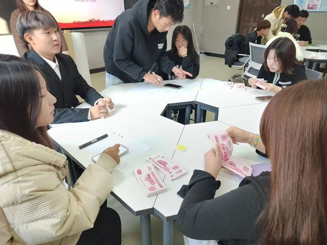 为进一步提升经济系学子专业技能水平,激发员工的学习热情和创新活力,以赛代训、以赛促学、以赛赋能,经济系于11月20日在二教215智慧教室开展了“点石成金,钞级较量”点钞大赛。