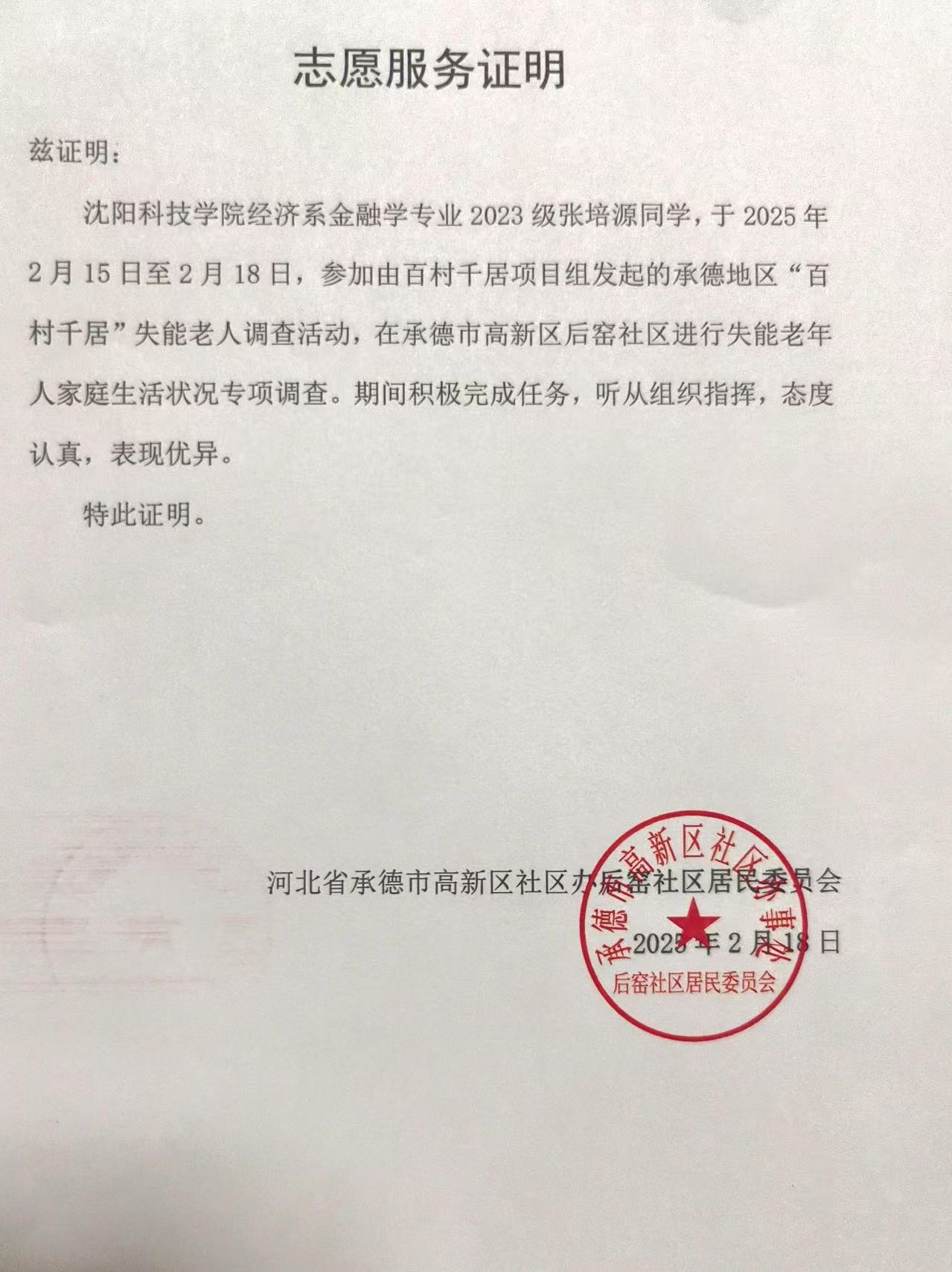 通过这次活动,我深刻认识到,作为社会的一员,我们有责任关注并帮助那些处于困境中的人群。失能老人的问题不仅仅是个人或家庭的问题,更是整个社会需要共同面对和解决的课题。它要求我们不仅要有同情心,更要有行动力,通过政策倡导、资源调配、志愿服务等多种形式,构建一个更加包容、更加有爱的社会环境。“百村千居”失能老人调查志愿活动,不仅是一次对社会的探索,更是一次心灵的洗礼。它教会了我倾听、理解、关爱与行动,让我更加坚定了未来在社会公益道路上继续前行的决心。我相信,只要我们每个人都能够贡献出自己的一份力量,这个世界就会变得更加美好和温暖。