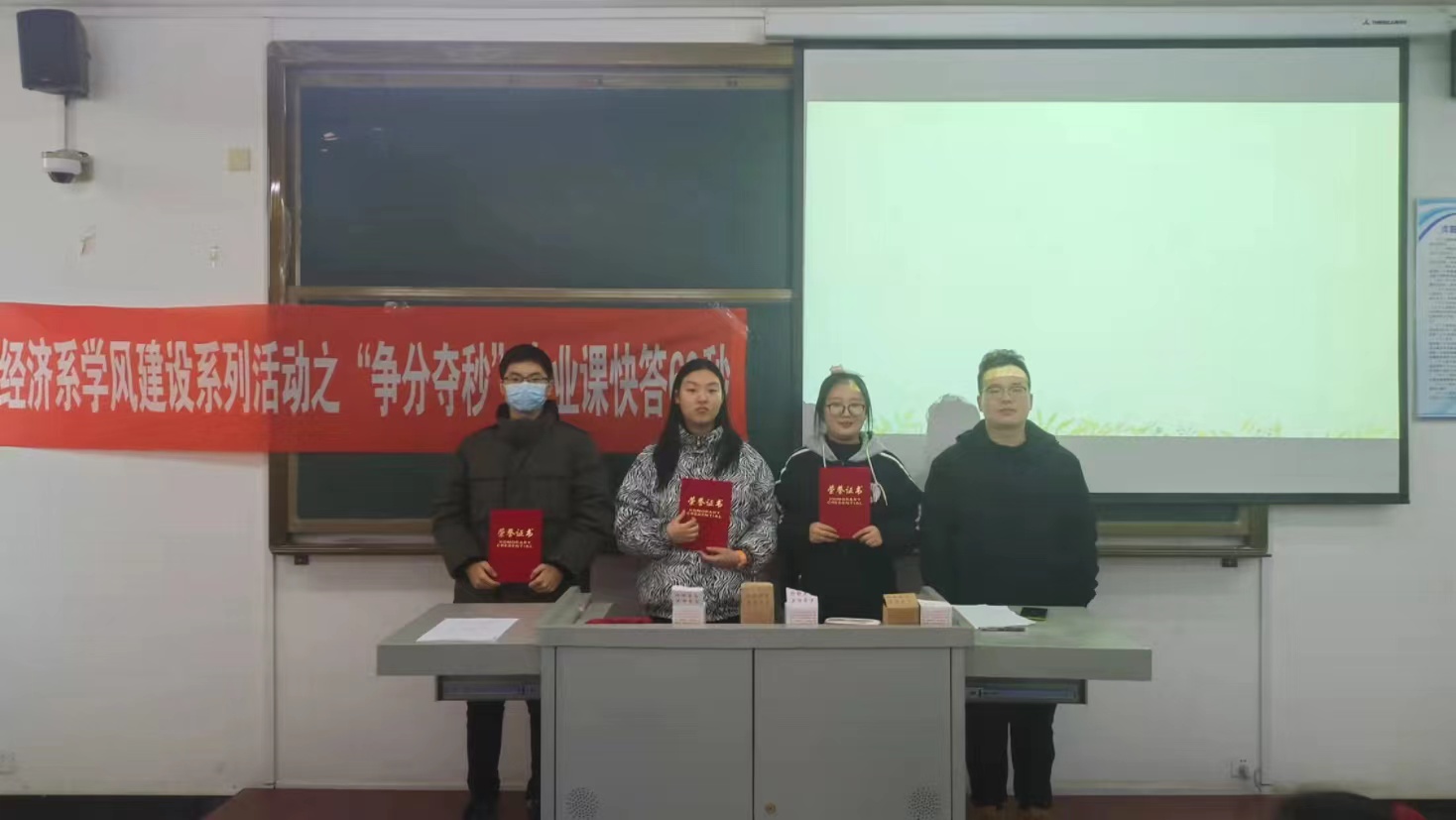 为树立典型、鼓励先进、表彰优秀,积极引导和激励经济系青年学子,形成刻苦求学、争优比学、严谨治学、尊师重学的良好风气,经济系于11月30日14时在二教424教室,开展了经济系2022年学风建设暨团学活动表彰大会,员工处处长何大伟,副处长林之娜,员工处教师程龙,经济系党总支书记衣方丹,经济系分团委书记黎明东,经济系2021级辅导员张珊参加了此次表彰大会。 活动伊始,师生共同回顾了经济...