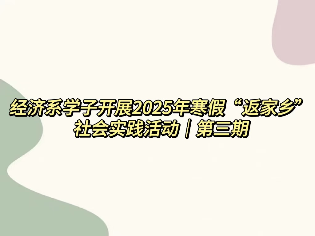 为深入学习贯彻习近平总书记关于青年工作的重要思想,经济系学子利用寒假时间,返回家乡,深入基层,开展形式多样的社会实践活动,在实践中感悟时代脉搏,厚植家国情怀,展现新时代青年的责任与担当。曹庆禹专业班级:互联网金融2301实践地点:辽宁省铁岭市西丰县实践照片:实践感悟: 此次“返家乡”志愿服务活动是我老员工活中宝贵经历。在成平满族乡人民政府服务期间,我在奉献中成长,在实践中收获。深刻认识......