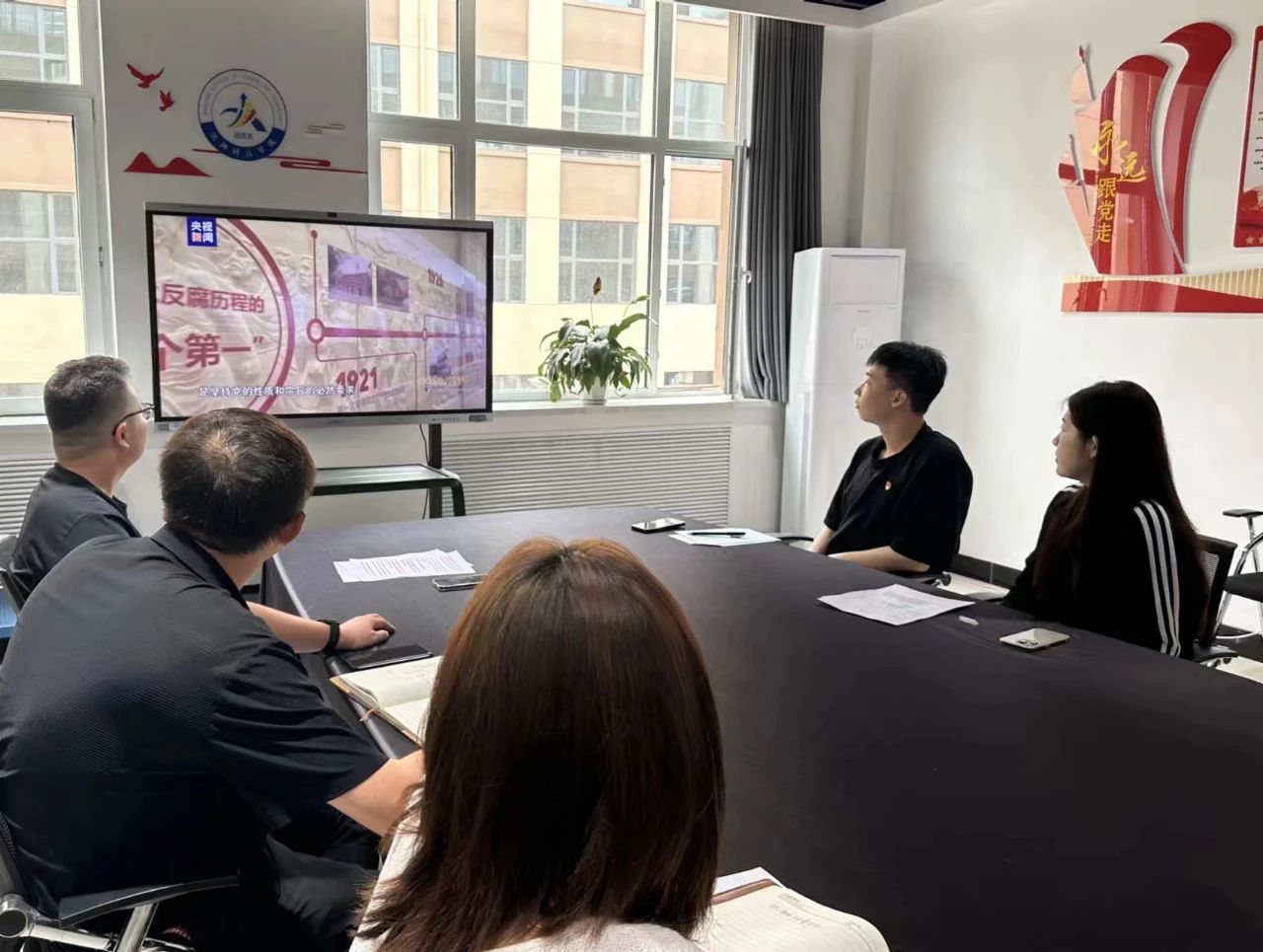 会议最后,全体党员一同观看纪录片《永远吹冲锋号》。